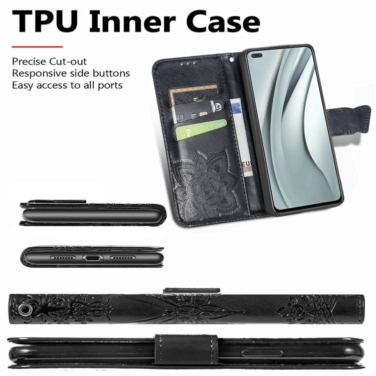 Funda de Cuero Flores de Amor Mariposa para Infinix Note 8 con Soporte y Ranuras (Negro)