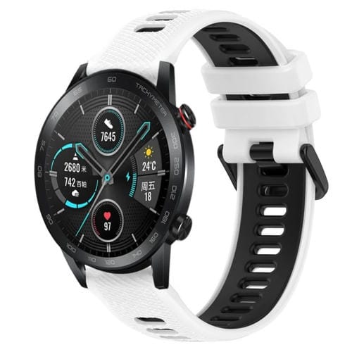 Pour Honor Magic Watch 2 46 mm 22 mm Bracelet de montre en silicone bicolore sport (blanc + noir)