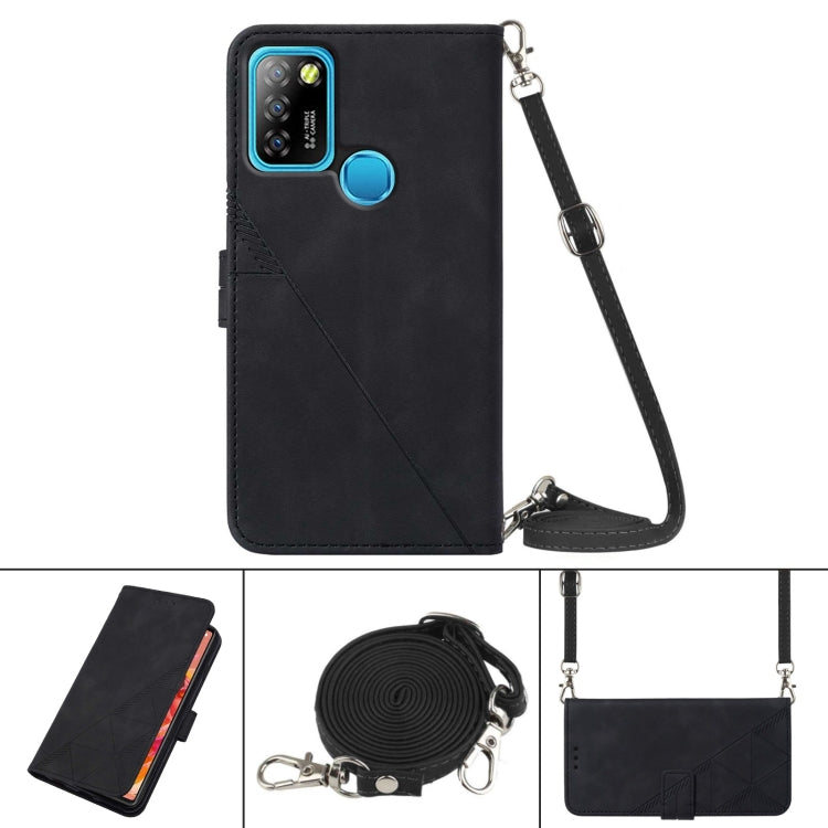 Funda Crossbody 3D Embossed Flip de Cuero para Infinix Hot 10 Lite y Smart 5 (Negro)