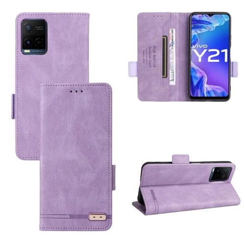For Vivo Y21 / Y33S Funda de Cuero Magnética de Cierre (Púrpura)