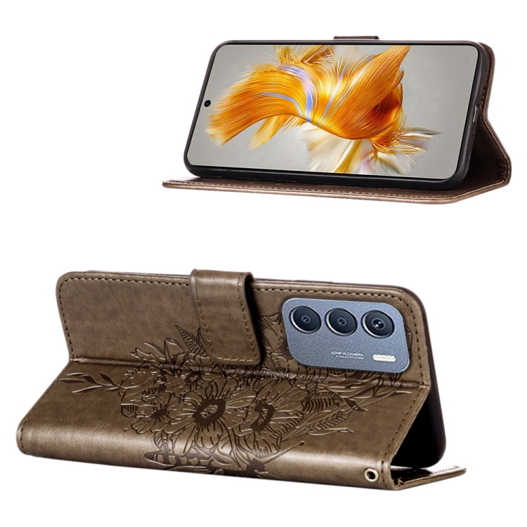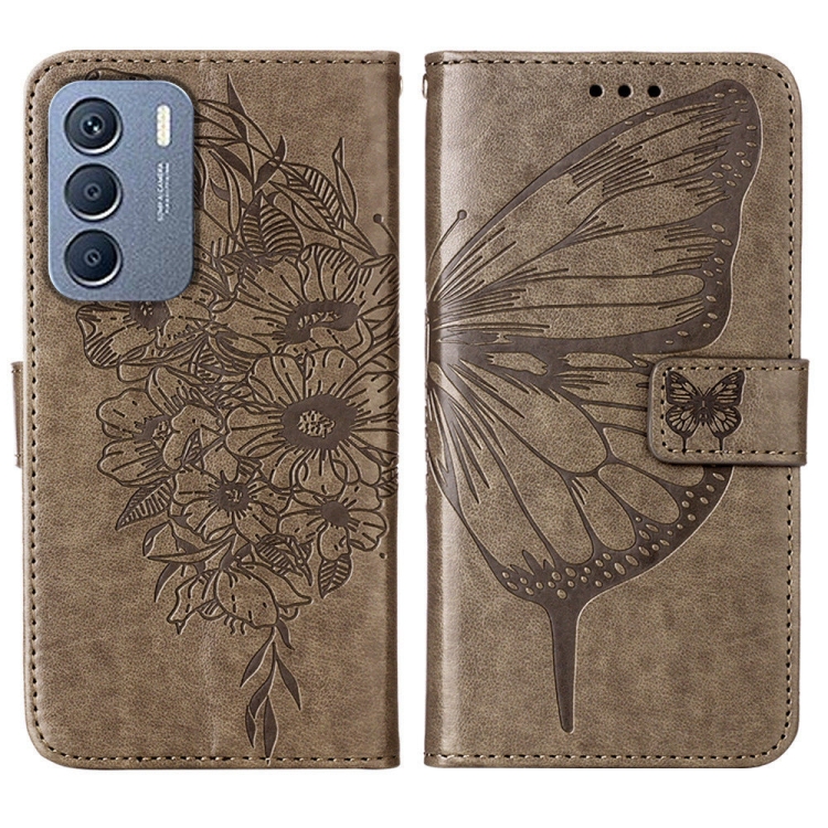 Estuche para Teléfono Forinfinix Zero 5G 2023 / T781 Cuero con Mariposa en Relieve (Gris)