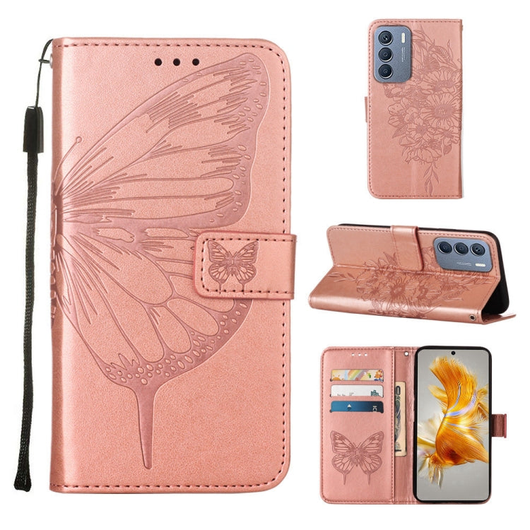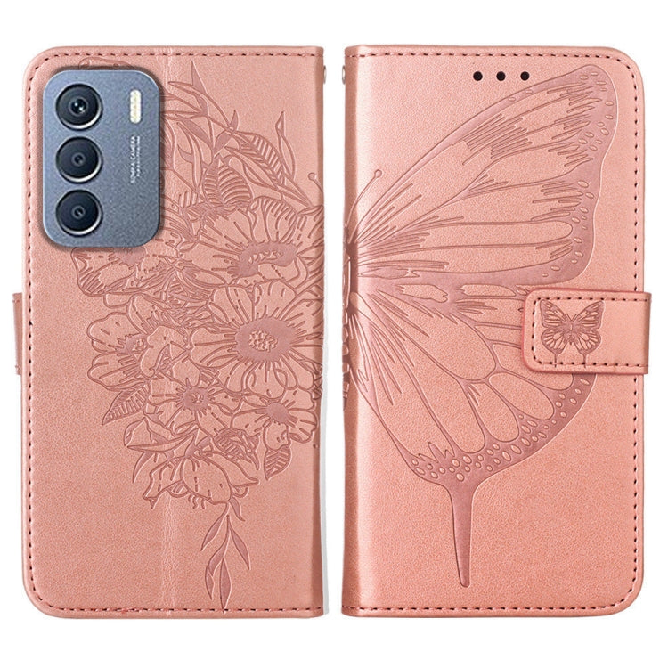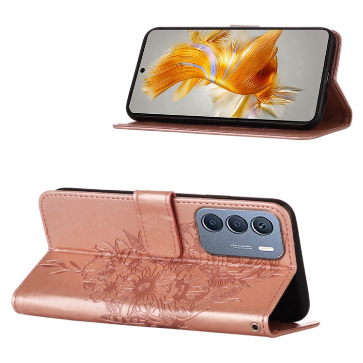 Estuche de Cuero Forinfinix Zero 5G 2023 T781 con Mariposa en Relieve (Oro Rosa)