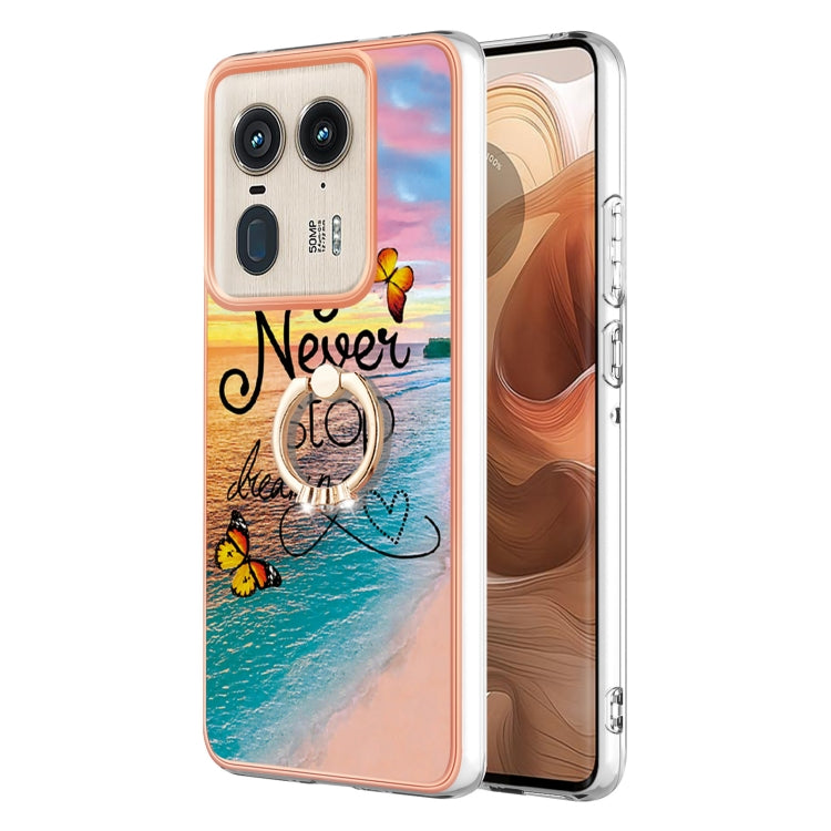 Funda TPU a prueba de golpes Motorola Edge 50 Ultra con patrón galvanoplastia y soporte anillo (Mariposa Persiguiendo Sueños)