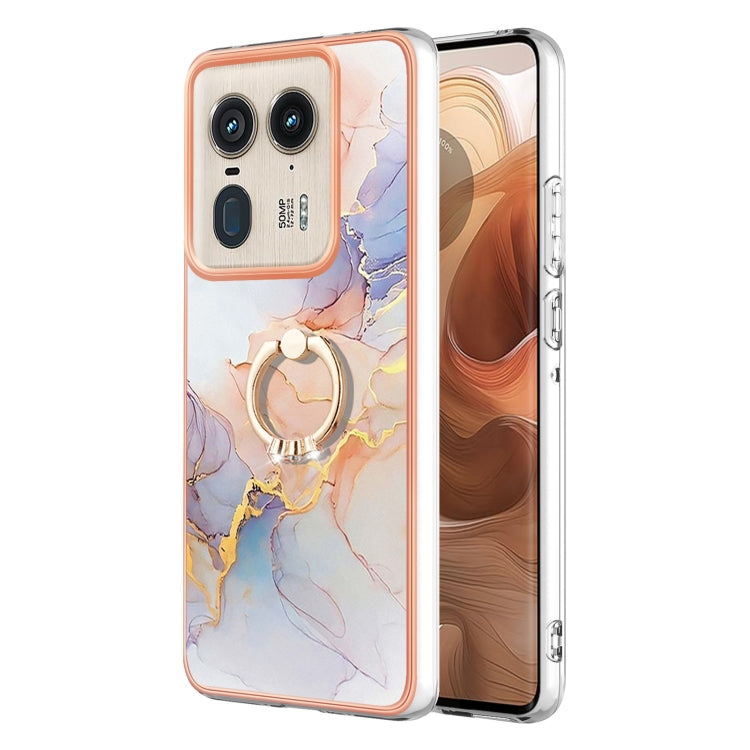 Funda TPU a Prueba de Golpes con Galvanoplastia Imd y Soporte para Anillo para Motorola Edge 50 Ultra (Mármol Blanco)