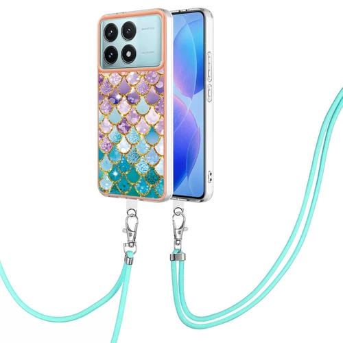 Funda a Prueba de Golpes con Patrón de Galvanoplastia Imd TPU para Xiaomi Poco F6 Pro 5G con Cordón para El Cuello (Escamas de Colores)
