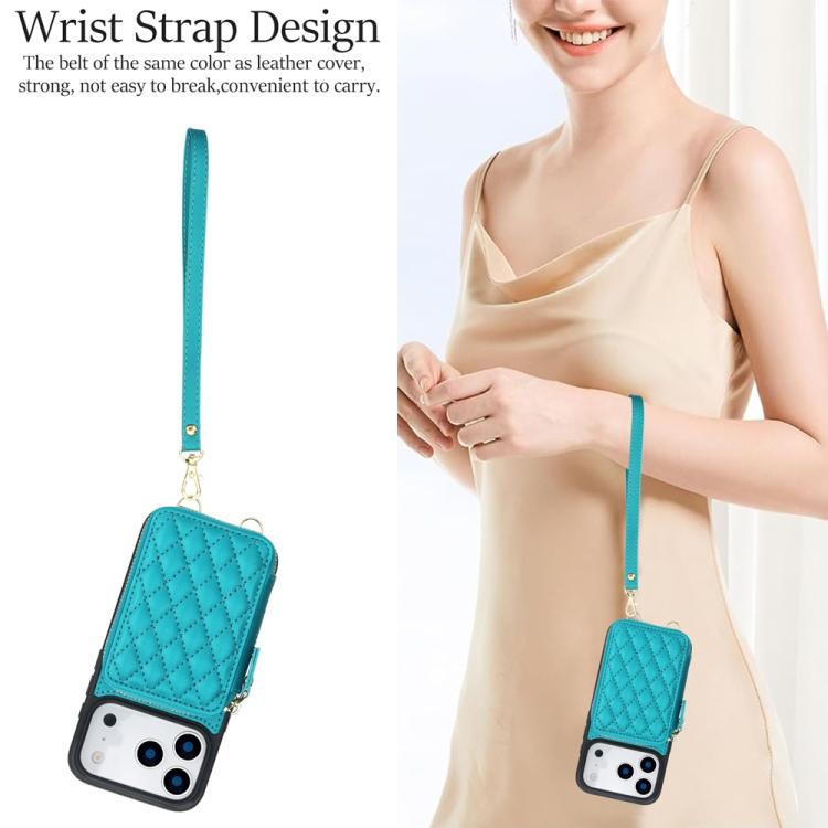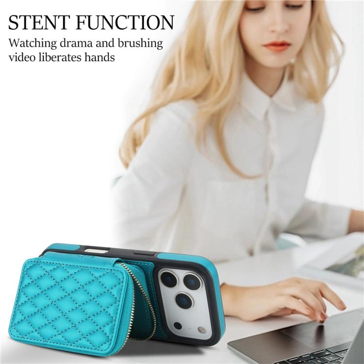 Funda AwQuer con cierre tipo cartera y parte trasera de piel con diseño rómbico para iPhone 17 Pro Max (verde)