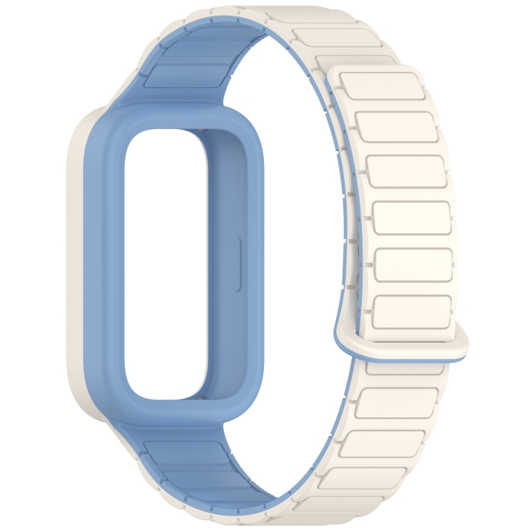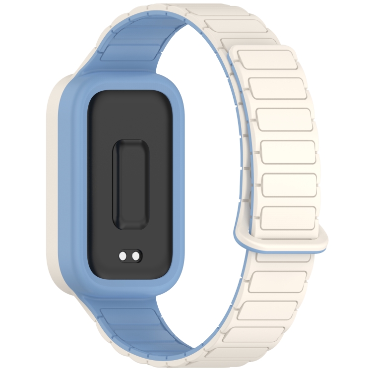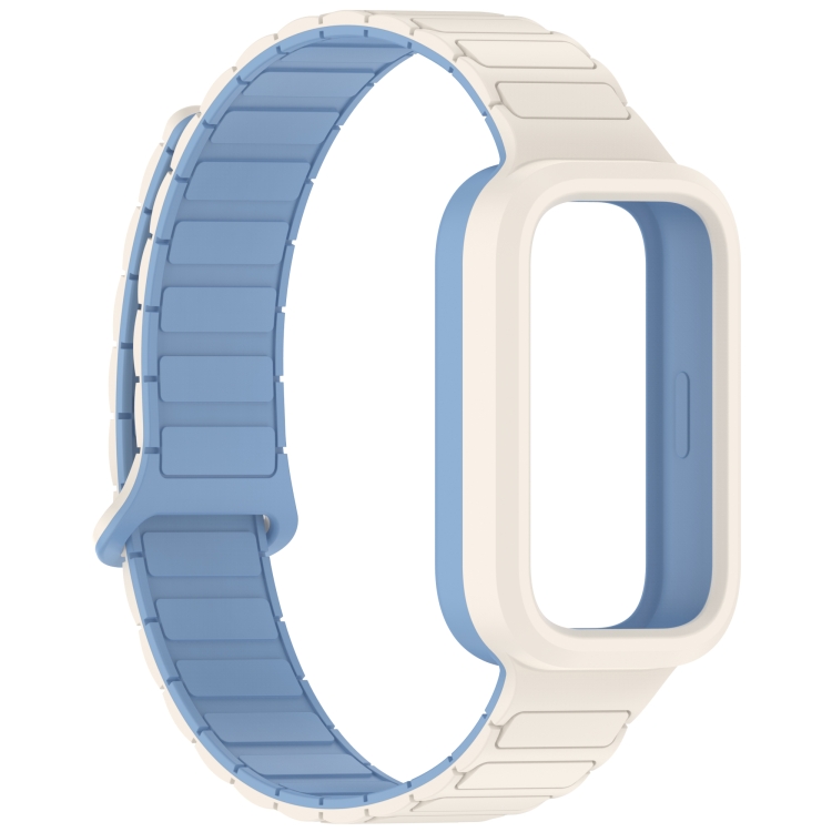 Funda blanda de dos colores para Xiaomi Band 9 Active, correa de silicona magnética integrada (blanco y azul)