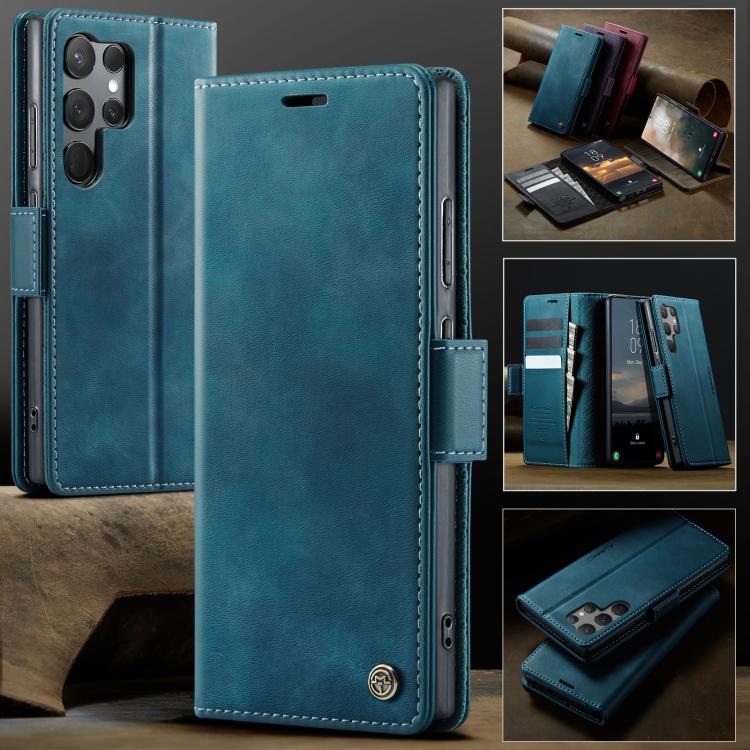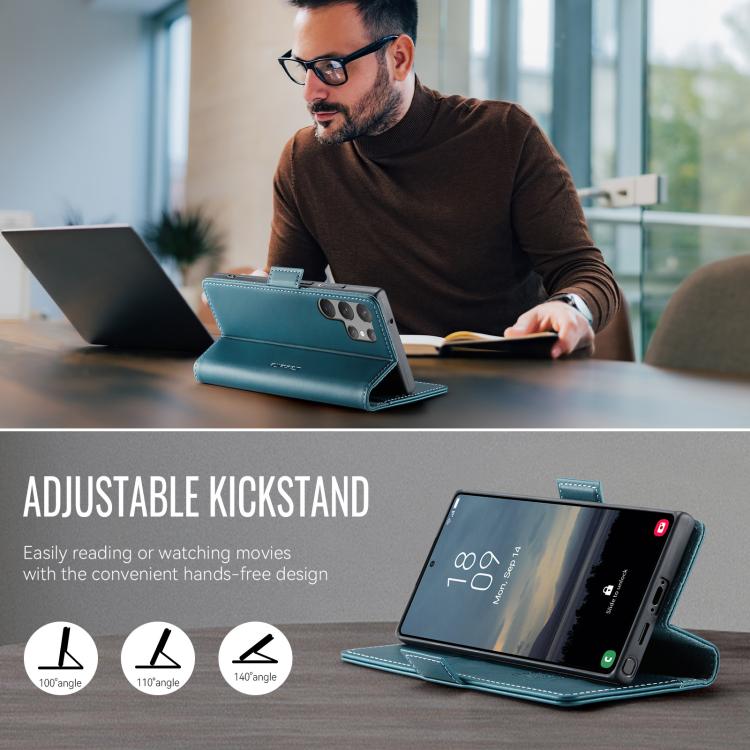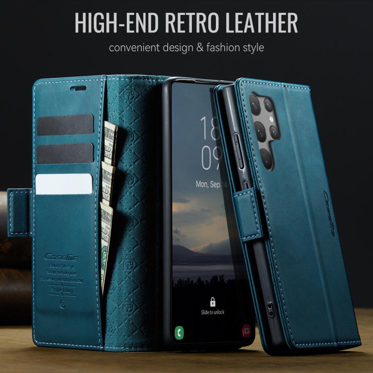 Funda CaseMe 033 para Samsung Galaxy S23 Ultra 5G, forro de piel de becerro, microfibra, con bloqueo RFID (verde)
