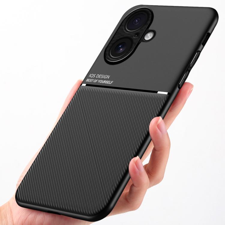Funda clásica de PC + TPU con diseño de tira inclinable y granulado para iPhone 17 (roja)