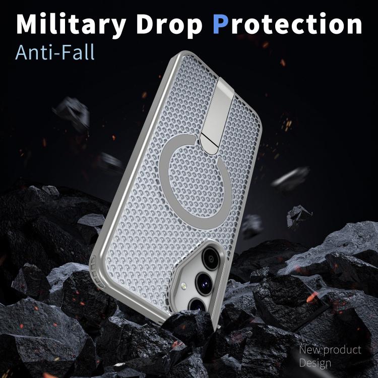 Funda con soporte MagSafe y ventilación de panal para Samsung Galaxy A25 5G (gris titanio)