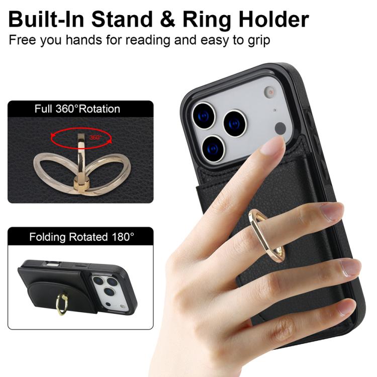 Funda con tarjetero y anillo para iPhone 17 Pro (negra)