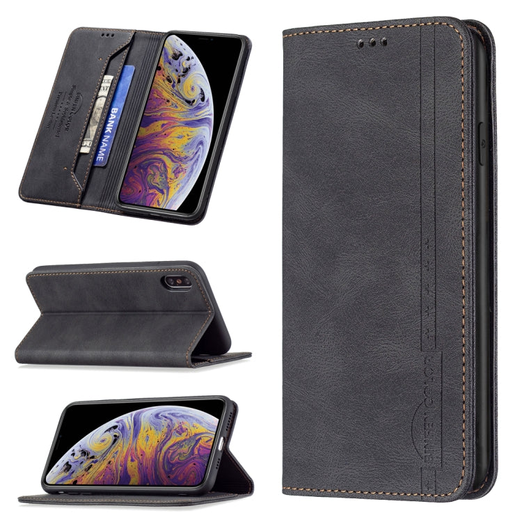 Funda de Cuero Antirrobo Bloqueo Rfid Magnético con Soporte y Ranuras para Tarjeta para iPhone Xs Max (Negro)