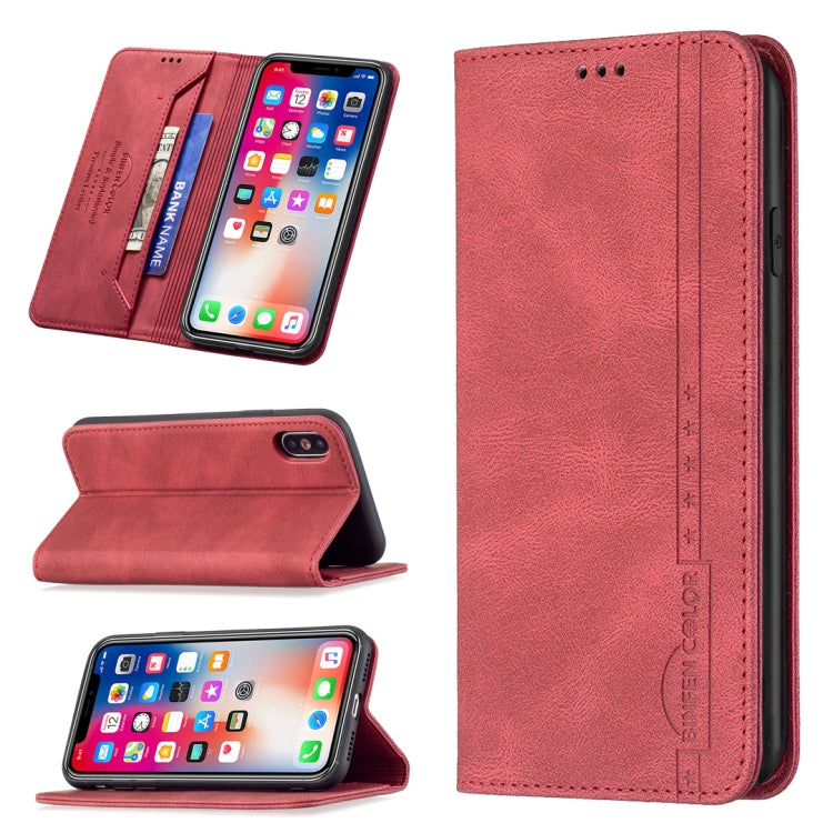 Funda de Cuero Antirrobo Bloqueo Rfid Magnético con Soporte y Billetera para iPhone X / Xs (Rojo)