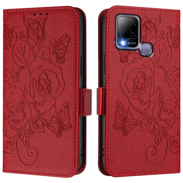 Funda de Cuero Antirrobo RFID con Relieve para Infinix Hot 10I (Rojo)