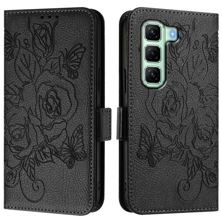 Funda de Cuero Antirrobo RFID con Relieve para Infinix Hot 50 4G (Negra)