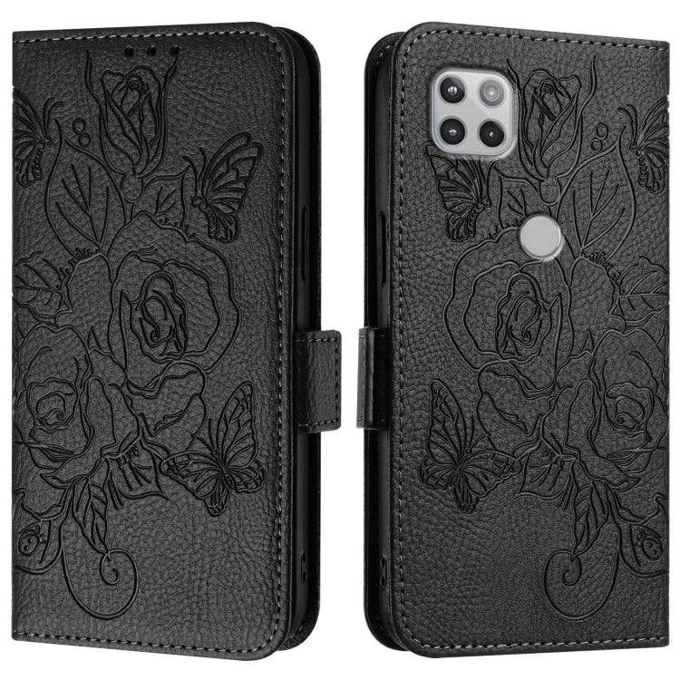 Funda de Cuero Antirrobo RFID con Relieve para Motorola Moto One 5G/G 5G 2020 (Negra)