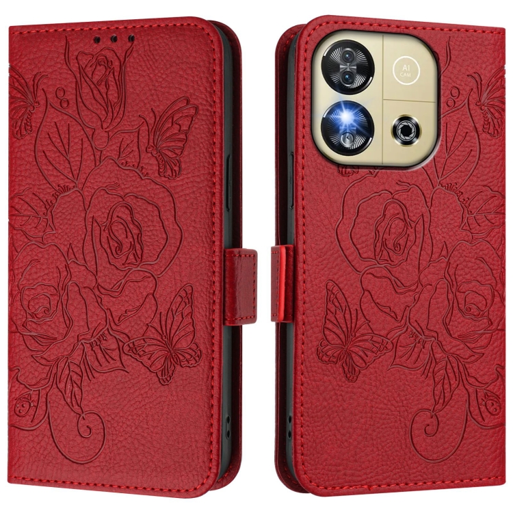 Funda de Cuero Antirrobo RFID con Relieve para Teléfono Oukitel C57S (Rojo)