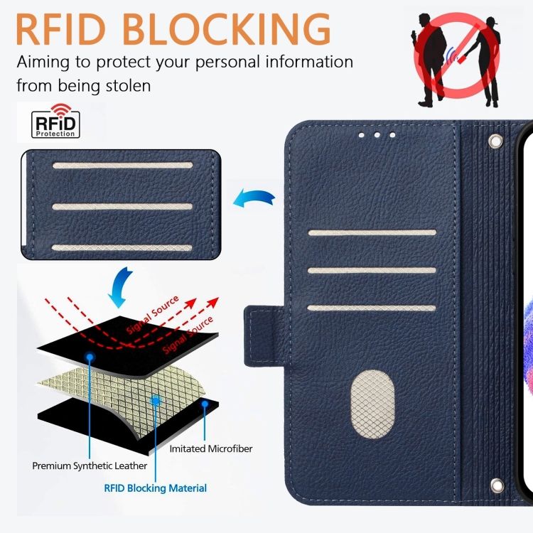 Funda Cuero Antirrobo RFID con Relieve para ZTE Blade A35/A55 (Azul Oscuro)