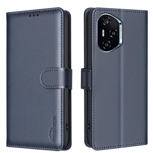 Funda de Cuero Antirrobo RFID con Textura de Lichi para Honor 300 Pro/300 Ultra (Azul)