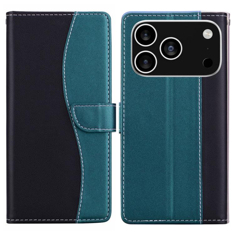 Funda de cuero bicolor con relieve para iPhone 17 Pro Max (negro y verde)