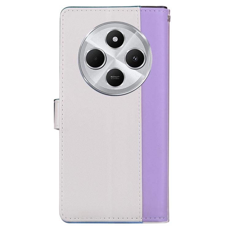 Funda de cuero bicolor con relieve para Redmi 14C 5G (morado y blanco)