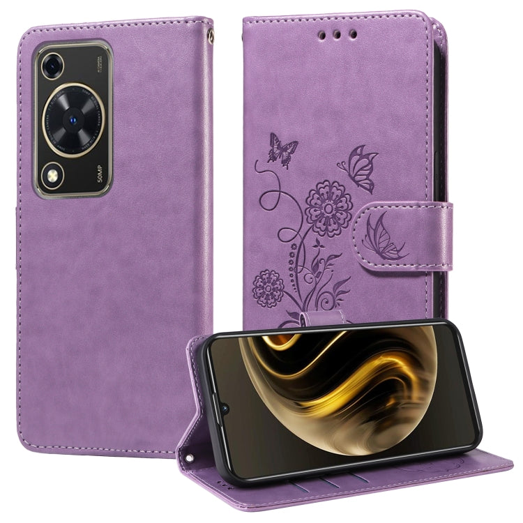 Funda de Cuero con 70 Flores de Mariposa en Relieve para Huawei Nova Y72 4G/Enjoy (Morado)