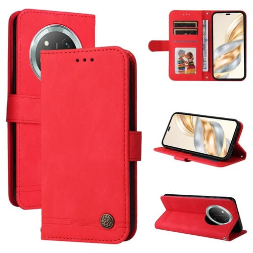 Funda de Cuero con Botones de Metal y Árbol de la Vida para Honor X9C y Magic 7 Lite (Rojo)