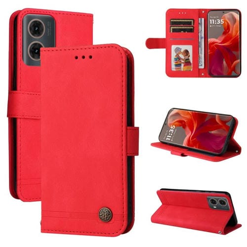 Funda de Cuero Motorola Moto G85/S50 Neo con Botones de Metal y Diseño Árbol de la Vida (Rojo)