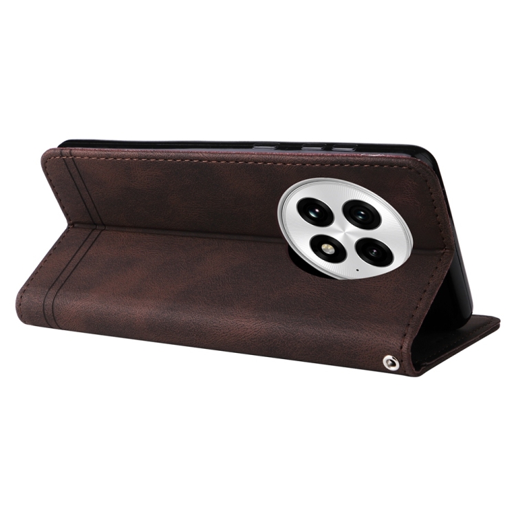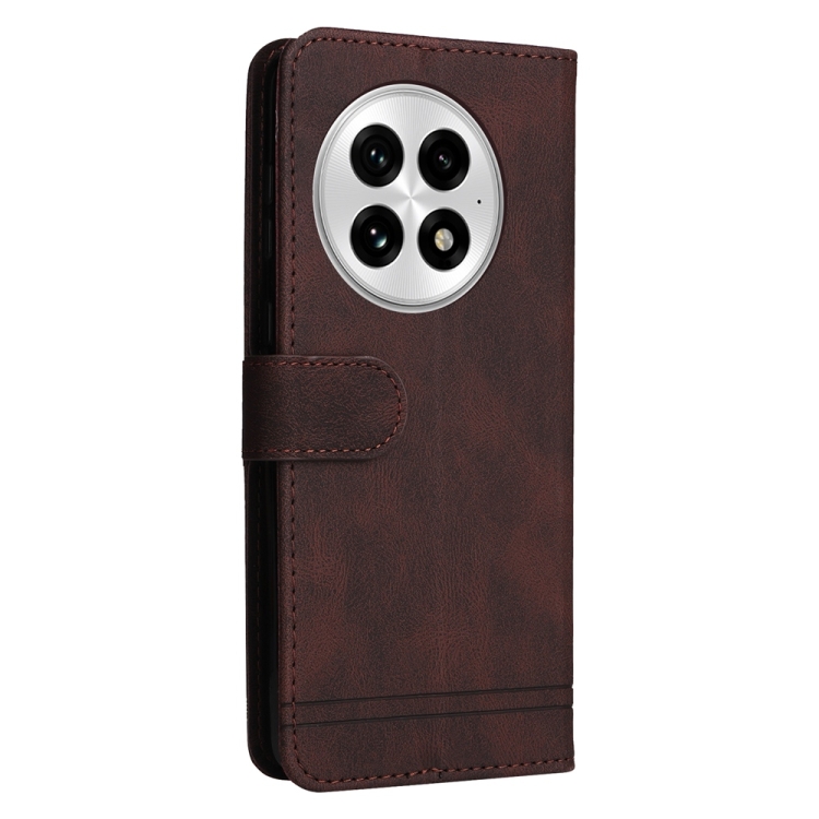 Funda de Cuero para OnePlus 13 con Botones de Metal y Diseño Árbol de la Vida (Marrón)