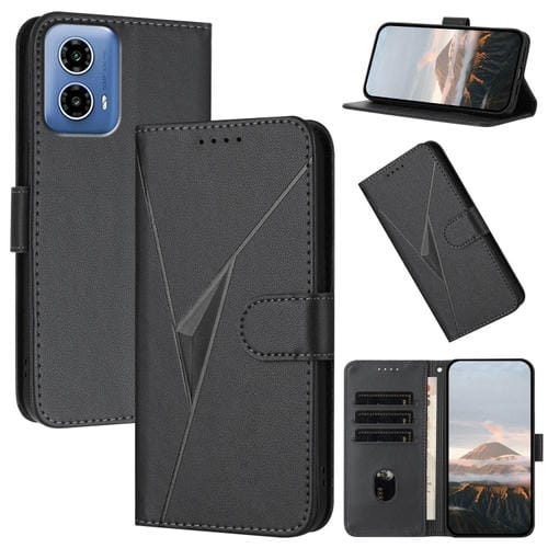 Funda de Cuero Motorola Moto G34 con Cierre de Hebilla y Diseño Triangular (Negro)