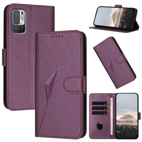 Funda de Cuero con Hebilla Triangular para Redmi Note 10 Je (Morado Oscuro)