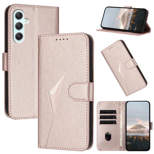 Funda de Cuero Samsung Galaxy A35 5G Cierre de Hebilla Diseño Triangular (Oro Rosa)