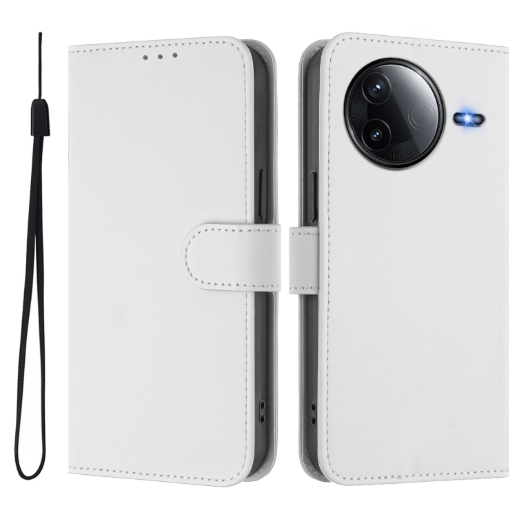 Funda de Cuero con Cordón para Redmi K80/K80 Pro, Color Sólido y Tacto Suave (Blanco)