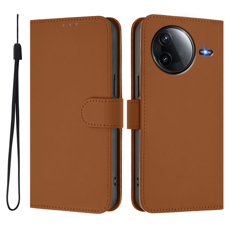 Funda de Cuero con Cordón para Redmi K80/K80 Pro, Color Sólido y Tacto Suave (Marrón)