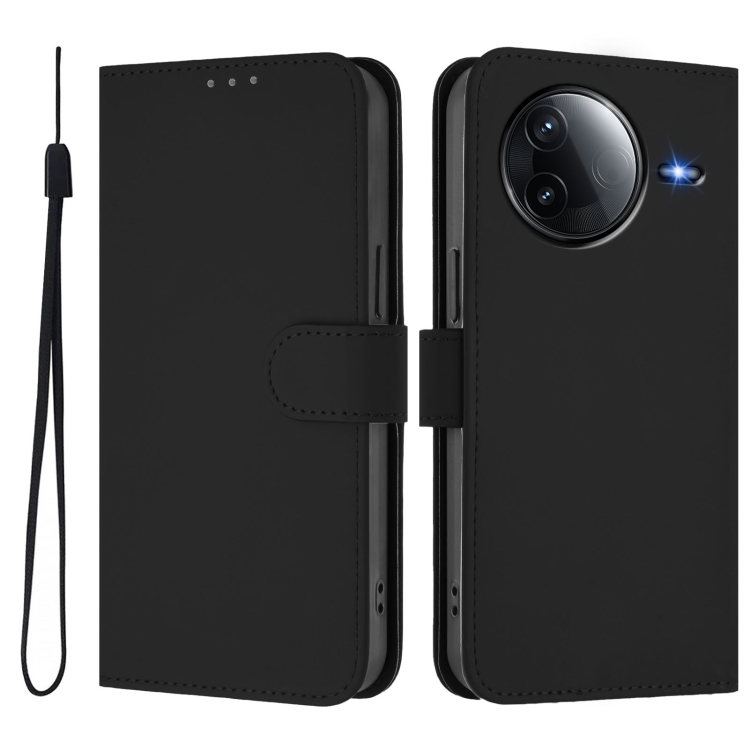 Funda de Cuero con Cordón para Redmi K80/K80 Pro, Color Sólido y Tacto Suave (Negro)