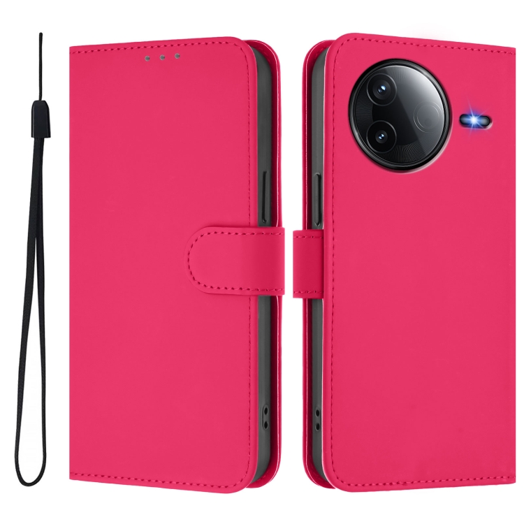 Funda de Cuero con Cordón para Redmi K80/K80 Pro, Color Sólido y Tacto Suave (Rosa y Rojo)