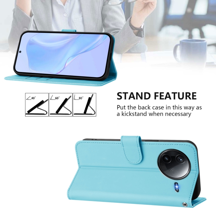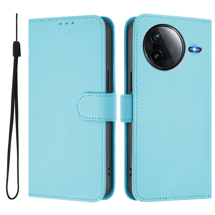 Funda de Cuero con Cordón para Redmi K80/K80 Pro Skin Feel de Color Sólido (Azul Cielo)