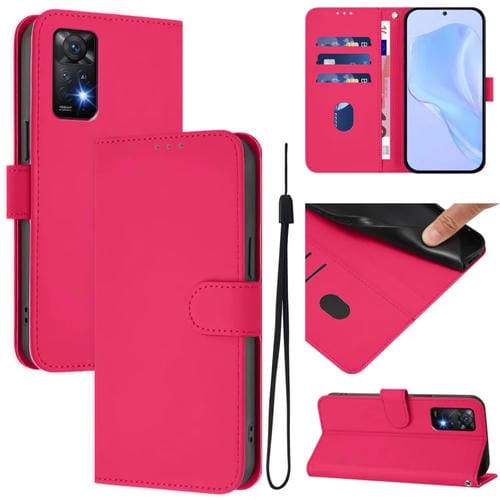 Funda de Cuero con Cordón para Redmi Note 11 Pro 4G, Color Sólido, Tacto Global (Rosa y Rojo)