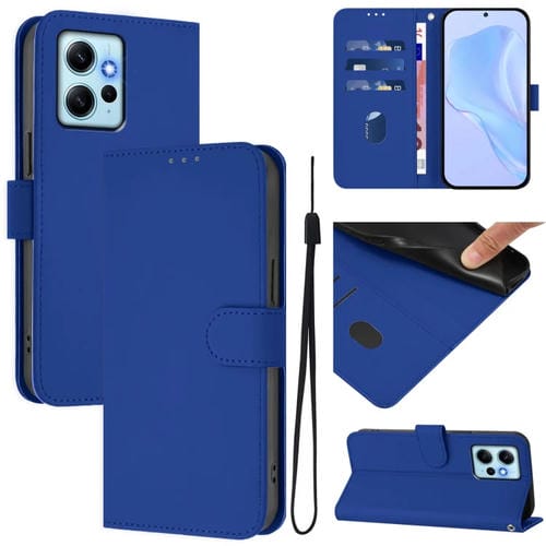 Funda de Cuero con Cordón para Redmi Note 12 4G, Color Sólido, Tacto Global (Azul Oscuro)