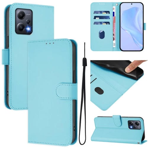 Funda de Cuero con Cordón para Redmi Note 12 5G, Color Sólido, Tacto Global (Azul Cielo)