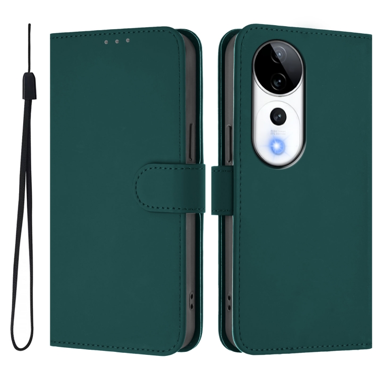 Funda de Cuero con Cordón para Teléfono con Diseño de Piel de Color Liso y Tacto Suave para Vivo S19 Pro (Verde Oscuro)