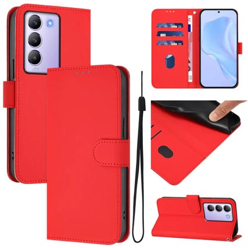 Funda de Cuero con Cordón para Teléfono con Diseño de Piel de Color Liso y Tacto Suave para Vivo Y100 5G Idn/V40 Se 5G (Rojo)