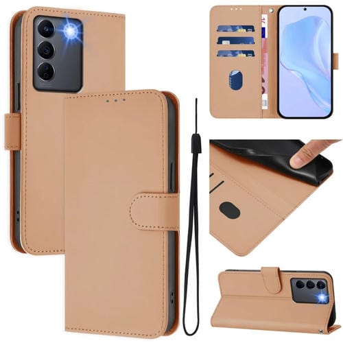 Funda de Cuero con Cordón para Teléfono con Diseño de Piel Sintética de Color Liso y Tacto Suave para Vivo V27E 4G Global/T2 4G Global (Desnudo)