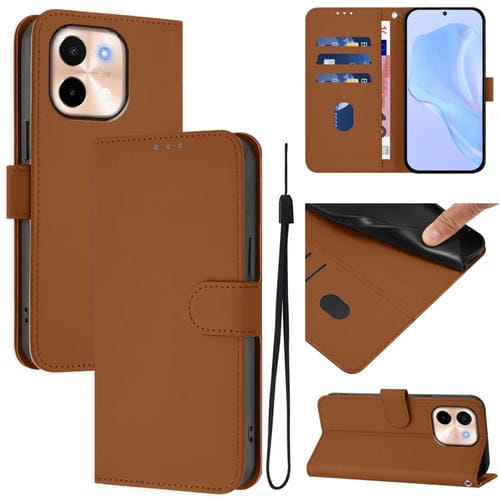 Funda de Cuero con Cordón para Teléfono con Diseño de Piel Sintética de Color Sólido para Vivo Y28 4G (Marrón)