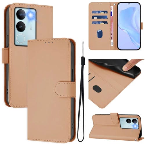 Funda de Cuero con Cordón para Teléfono con Sensación de Piel de Color Liso para Vivo V29 5G Global / V29 Pro (Desnudo)