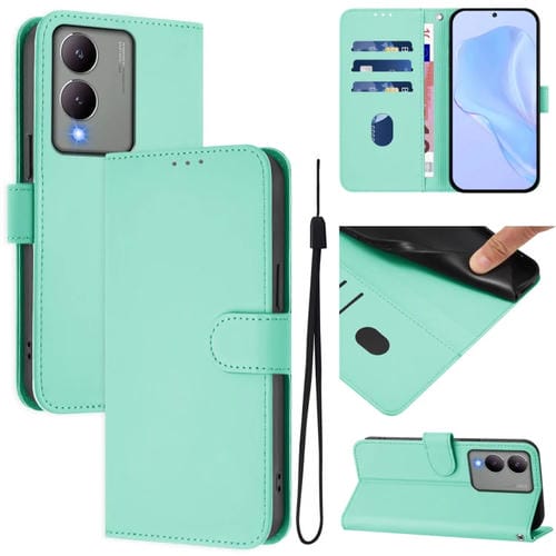 Funda de Cuero con Cordón para Teléfono con Sensación de Piel Global y Color Sólido para Vivo Y17S 4G (Verde Menta)