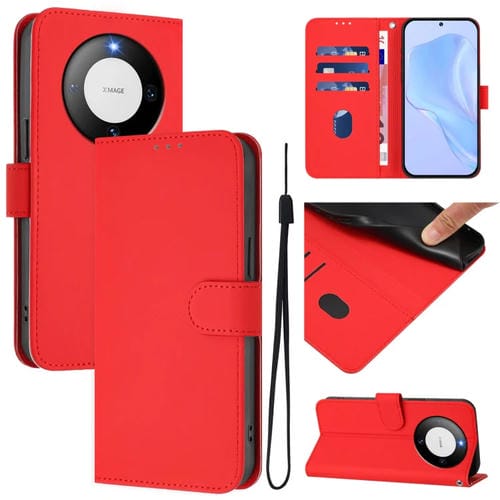 Funda de Cuero con Cordón para Huawei Mate 60 Pro / 60 Pro+ (Rojo)