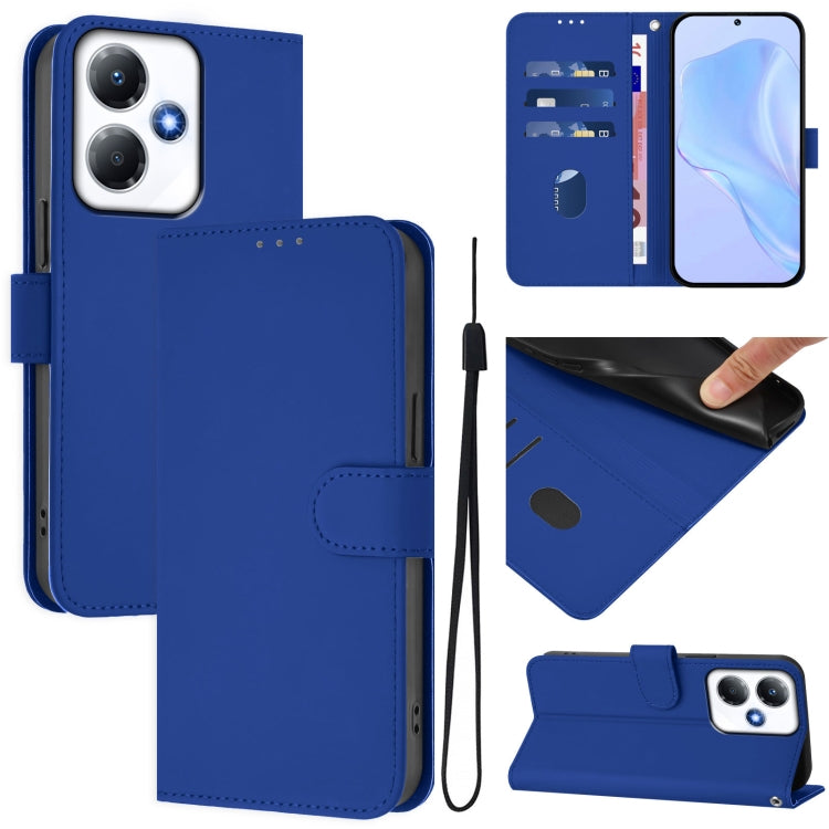 Funda de Cuero con Cordón para Infinix Hot 30 Play NFC 4G con Tacto de Piel (Azul Oscuro)