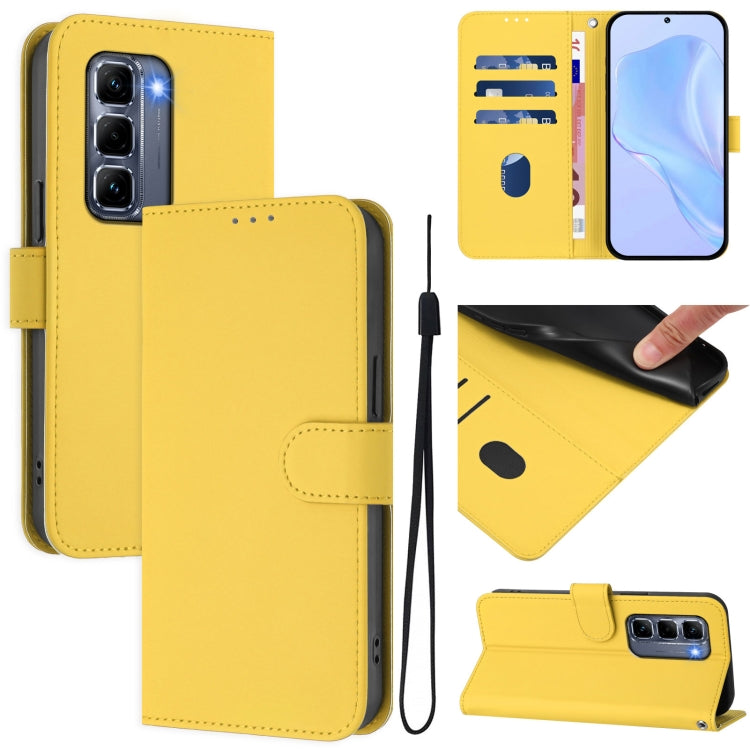 Funda de Cuero con Cordón para Infinix Hot 50 Pro+ 4G con Tacto de Piel (Amarillo Limón)