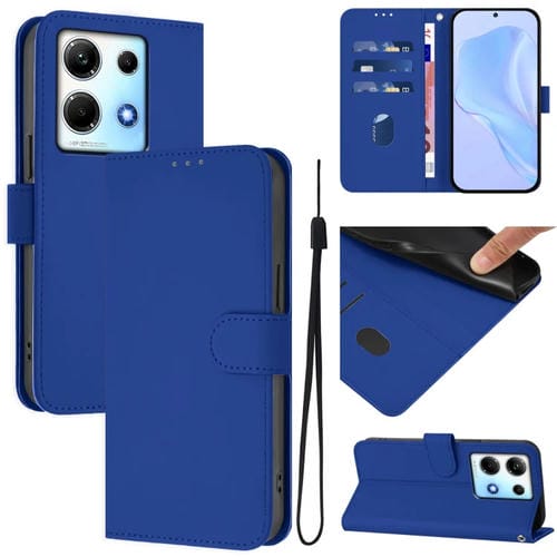 Funda de Cuero con Cordón para Teléfono Infinix Note 30 4G/5G con Tacto de Piel (Azul Oscuro)